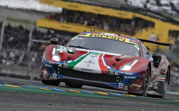 A legszorosabb meccset - ahogy mindig - a GTE Pro kategória hozta. Az utolsó fél órára, bő 23 órával a rajt után itt még körön belül fordult rá az első öt két Ford, két Porsche és egy Ferrari felosztásban. Végül utóbbi, az AF Corse 488-asa nyert a Calado/Guidi/Serra trióval két Porsche előtt. A Ferrari győztes hármasából egyébiránt ketten, Calado és Guidi is először nyertek kategóriát Le Mans-ban, de ennél nagyobb szó, hogy a 488-as kategóriagyőzelme a Ferrari első Le Mans-i győzelmének hetvenéves évfordulóján született.