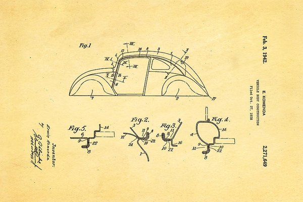 Az egyértelműen bizonyítható, hogy Komenda, aki egyébként a háború után a Porsche sportkocsigyárban dolgozott, és 1966-ban meghalt, fontos szerepet játszott az eredeti Bogár tervezésében. Csakhogy az a szerzői jog, ha illette is az utódait, már elévült. Az örököse ezért azt igyekezett bizonyítani, hogy a 2014 óta gyártott New Beetle típusú autók is édesapja szellemi termékének utánzatai.