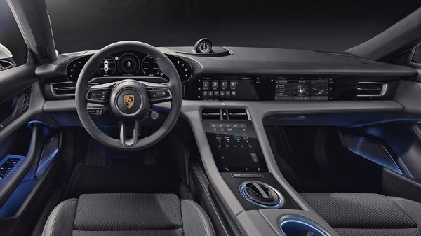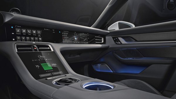 Bő egy hét van még a Taycan hivatalos, mindent felfedő bemutatójáig, de a Porsche az utasteret inkább megmutatta előre. Úgy látszik, nem spórolták ki az érintőképernyőt.