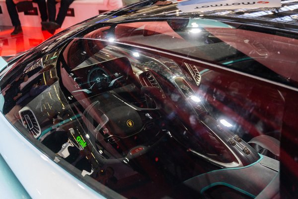 A kínai autók zömét még mindig túl könnyű köpködni, mert minden évre be van ígérve a világmegváltás, de továbbra is ott tartunk, hogy talán jövőre. A Hongqi S9 (ezt a nevet mondta egy hosztesz) sportautó 21 colos kerekei mögül Brembo féknyergek villannak, a beltér egészen kidolgozottnak tűnik, a hátsó kerékjáratba benézve viszont gyanús, hogy hiányos a hajtáslánc.