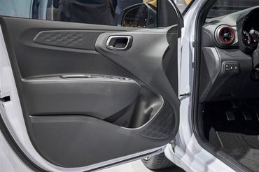 A lényeg azonban a belső, és az i10 megtartotta fő erényét, meglepően tágas az elfoglalt négyzetméterhez képest. Lábunk és fejünk hátul is jól elfér, bár figyelemmel a szélességére, négyszemélyesnek is vizsgáztatható. Elöl már szinte levegős a tér, a 252 literes csomagtartó pedig a városi csöppségek között jónak számít. Az ajtókárpitok még a jól felszerelt változatban is kopogós műanyagból állnak, de egy szép nagy palack legalább belefér az ajtózsebbe.