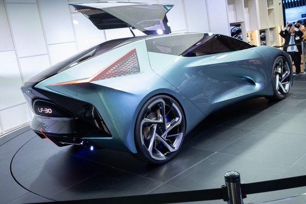 Minden kezelőszerv drive-by-wire-módon működik, de a futómű például aktív, a négy kerék-agymotorral ügyes nyomatékvektorozás lesz kanyarban, a 400 kW-nyi teljesítmény és 700 Nm-nyi forgatónyomaték pedig, akárhogy is vesszük, elég dinamikus járművet rajzol ki, még ha tudjuk, hogy az LF–30 5,1 méter hosszú, 2 méter széles, 1,6 méter magas és 2,4 tonna súlyú lesz. A végsebességet, mint a villanyautóknál általában, itt is 200 km/h-ban korlátozzák, de a 3,8 s-os 0-100-as gyorsulás azért már elég jó?