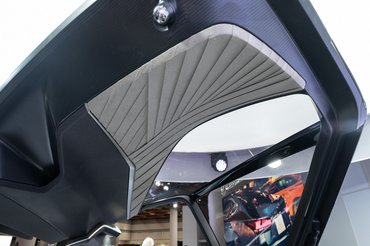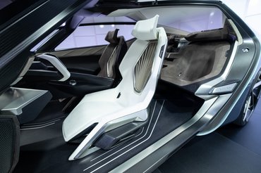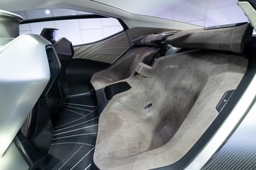 IC: Ha ilyeneket alkalmazunk, sokkal többféle módon lehet a karosszériával játszani, ezek jóval több helyet is hagynak belül. Elöl például olyan lehet a kocsi belseje, mint valami luxusrepülőgép kabinja. Nem akadály az aerodinamikailag hatékony ékforma kialakítása, mert a kocsi alakját már nem a gépészet határozza meg. A szabadabb tervezési lehetőségeinkkel farfókuszúvá tudjuk tenni a formát, kicsit olyanná, mintha hátsókerék-hajtásos lenne, ami egyben elegáns is. Persze itt óriásiak, 24 collosak a kerekek, ráadásul a kerekek küllői beleállnak a gumikba, hogy azok még nagyobbaknak látsszanak. A Good Yearrel együtt dolgoztunk ezeken a spéci gumikon, amelyek annyira valódiak, hogy nem is tömörek, mint a tanulmányautókon általában, hanem fúvottak.