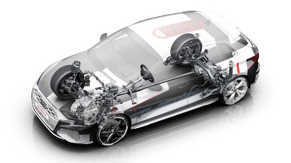 Az Audi újdonsága progresszív kormányzást és új, aktív csillapítású rugózó elemeket ígér, bár a futómű elrendezése hasonló marad az eddigihez: elöl MacPherson tagokat, hátul pedig multilink felfüggesztést kap az új S3 is.