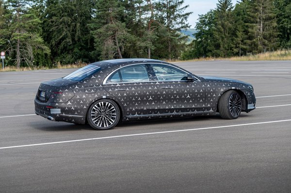 A legújabb előzetesbe ezért néhány új fotó is bekerült az autóról, amelyet a távolságtartást szimbolizáló háromágú kiscsillagos fóliával álcáztak valamelyest. Ezeken már jól látszanak az autó arányai és jellegzetesebb részletei, például az övvonalat hangsúlyozó határozott él, vagy éppen a tető íve. Egyértelmű, hogy ezúttal elegáns, letisztult vonalvezetésű és konzervatív autót terveztek a Mercedesnél, amelyen nyomát sem látni a stílusváltás szándékának, de ez nem is feltétlenül probléma, hiszen eközben a műszaki tartalom az elérhető legkorszerűbbnek ígérkezik.