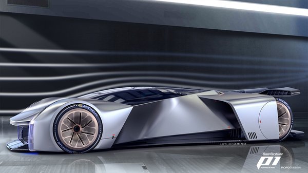 A Team Fordzilla P1 szuperalacsony versenygép – azt sem nagyon könnyű elképzelni, hogy hová férne el a pilóta – amely halványan azért emlékeztet a zárt sportocsi-prototípusokra. A fura, szárny nélküli aerodinamika, és az irreálisan alacsony tetővonal mellett a változtatható hossz az egyik legerősebb jellegzetessége: olyan hosszú egyeneseket tartalmazó pályákon, amilyen a Le Mans-i, a hosszabb beállítással lehet majd használni, míg például Monacóban rövidebb tengelytávval indulhatna. Mivel itt nem volt feladat a megvalósíthatóság vizsgálata, ez is simán belefér a koncepcióba.