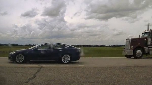 Calgarytól északra, az autópályán vettek üldözőbe a Kanadai Királyi Lovasrendőrség járőrei egy gyorshajtó Tesla Model S-t, amely a megengedett 110 helyett 140 km/h körüli tempóban közlekedett, de az autóba átnézve nem láttak senkit.