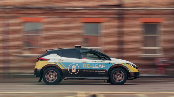 A Re:Leaf küldetése – már azon kívül, hogy újra képbe hozza a Leafet, amiről a sok új villanyautó között hajlamosak lennénk megfeledkezni – elvileg a katasztrófahelyzetekben való segítségnyújtás. Ezt két módon teszi a jármű: egyrészt mobil áramforrásként használható, mivel építettek bele 230 voltos invertert, ami szokványos váltóáramot szolgáltat az autó egyenáramú akkumulátorából. A Leaf 62 kWh-s akkucsomagja elég hosszú időre elegendő energiát tárol. Egy átlag brit házartás energiaigényét állítólag úgy hat napig lehet fedezni belőle, azaz egy katasztrófa helyszínén is napokig elegendő lehet.