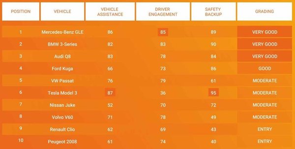 Az eredményben az az érdekes, hogy bár a Tesla Model 3 Autopilot rendszere az első és az utolsó kategóriában egyértelműen az első lett, a sofőrrel való együttműködésre olyan alacsony pontszámot kapott, hogy a végeredmény csak a hatodik helyre volt elég a tíz vizsgált autó közt.
