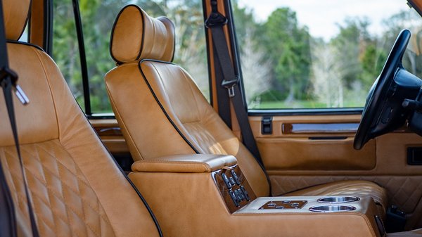 Itt van a floridai E.C.D. Automotive Design pályaműve a témában: egy fehér Range Rover, szépre restaurálva. Ebbe tömködték bele a Tesla Model S 100 kWh-s akksiját, amivel úgy 350 kilométert képes megtenni egy feltöltéssel. 450 lóerős elektromotorja van és 5,2 másodperc alatt szalad 60 mérföld/órára (kb 96 km/óra).