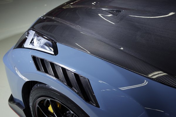 Nem kell sasszeműnek lenni, hogy észrevegyük, a szénszálas géptető fekete maradt. Tamura szerint ugyanis igyekeztek a lehető legtöbb súlyt megtakarítani, és bizony a számítások szerint a motorháztető fényezése plusz száz grammot jelentett volna. Úgy ám, tíz dekát. Párizsiból sem túl sok, egy ilyen autónál meglehetősen elenyésző. De ha le lehet faragni, miért ne tennék?