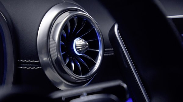 NACA beömlő alakú ív vezet az MBUX 11,9 colos érintőképernyőjéhez, aminek állítható lesz a dőlésszöge, hogy verőfényes napsütésben is látható maradjon. Abban pedig csak reménykedem, hogy gondoltak arra is, milyen lesz taperolni, ha egyébként órákig süti a nap. 12,3 colos LCD kijelző adja az óracsoportot, ami itt nem szabadon áll, mint mondjuk az S-ben, hanem árnyékolója van.