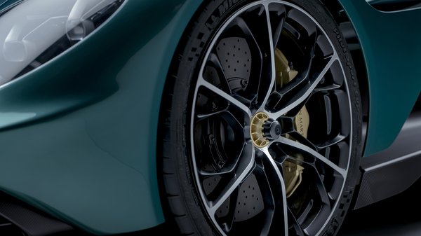 Felfüggesztése nyomórudas, mint a versenyautóké, és adaptív lengéscsillapítói vannak, valamint állítható magasságúak is, így a fekvőrendőrök előtt meg lehet emelni az orrát. Track módban az aszfalthoz közelebb engedi magát, hogy jobban dolgozzon az aerodinamika. Kifejezetten a Valhallához fejlesztett Michelin Pilot Sport Cup 2 gumikkal szerelik az elöl 20, hátul pedig 21 colos felniket, és karbon-kerámia fékei vannak, ami brake-by-wire rendszerű, tehát elektromos rásegítésű.