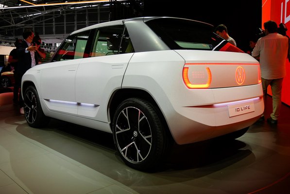 A valóságban leginkább a Honda e ugrik be róla, az egész felépítés és a retróstílus nagyon hasonló, viszont a villany-Hondácska tíz centivel minimum rövidebb nála. Az első benyomás alapján az ID.Life olyan, mintha a Golf I-est akarták volna feltámasztani, azt az apró különbséget leszámítva, hogy a villanyautónak hátra is kerek lámpákat rajzoltak, pont olyanokat, mint az elsők, csak piros színben. A tanulmányautó különlegessége, hogy a a fényforrások a műanyag burkolat alatt vannak, és átvilágítanak rajta. Közelről a műanyagon felfedezhető az a fajta fröcskölt minta, mint a piaci műanyag áruknál, mondjuk csepegtető tálcáknál látunk. Jópofa még az ajtók alsó harmadánál beépített, süllyesztett ledvilágítás.