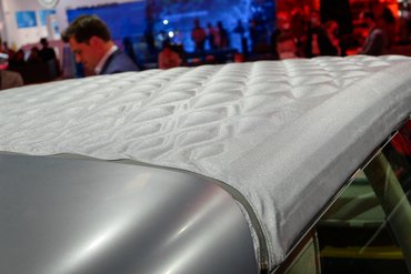 A tanulmány érdekessége még, hogy van benne egy beépített projektor, ami a műszerfal fedele alól előbújó vászonra vetít. Ennek a show-elemnek jól áll a távolság: a színpadon a környezeti fény mellett a vetítés gyakorlatilag alig látszott, maga vászon pedig nagyjából egy Audi hátsó, motoros árnyékolójából készülhetett, csak valahogy meggyűrődött... hát, ilyen egy prototípus. Viszont ha alatta már ott a valódi technika, akkor az már konkrét ígéret, a többit meg majd megcsinálják pár év alatt. Az iparági spekulációk szerint az sem biztos, hogy az akkucsomagnál a mai szokásos Li-ion kémiát használják majd, szóba került az olcsóbb lítium-vasfoszfát cellák felhasználása is.