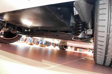Az ID.Life-ról már tudni lehetett, hogy a cég MEB-modulrendszerére épül, ezért a formatervezési trükkök helyett inkább a hátsó dobféket keresgéltem rajta. Ám itt turpisság van, és ki is derült: az MEB-nek lesz egy karcsúsított verziója, amelynek elöl van a motorja, akárcsak egy mai kisautóknak, hátul viszont nem az ID.4-éhez hasonló, soklengőkaros, masszív felfüggesztést kap, hanem egy szimpla, csatolt hosszlengőkaros hidat tárcsafékekkel, amit bármelyik kisautó alól átpakolhattak bele. Ez a modulrendszer nagy előnye: sok variáció lehetséges, és úgy cserélgethetik elöl-hátul a futóműrendszereket, ahogy csak jólesik.