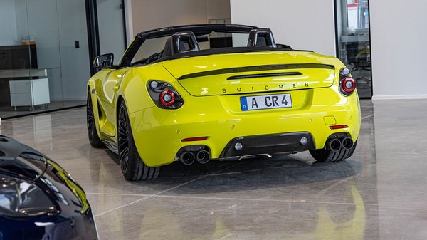A Boldmen első modelljének karosszériája nem tűnik érdekesebbnek, vagy mutatósabbnak az alapjául szolgáló BMW Z4 M40i-nél. A karosszériaelemekből tényleg nem tartottak meg sokat, de a múltidéző forma helyett, ami a Wiesmann modellek karakterét adta, itt valami korszerűt rajzoltak. A végeredmény nem kellemetlen, de szemből nem is túl jellegzetes – hogy ezzel az enyhén audis arccal hoz-e elég vevőt a CR4, az egyáltalán nem biztos.