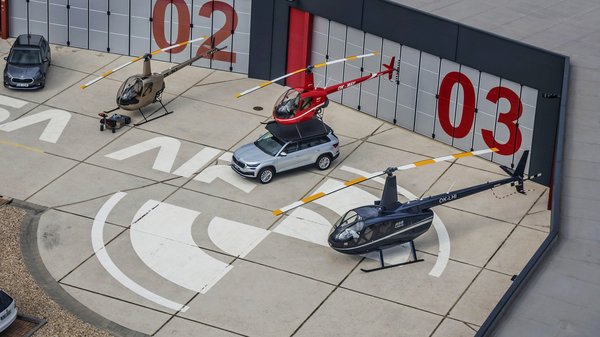 Először csak az autó tetejére emelték a Robinson R22 típusú, 620 kilós helikoptert, majd mindent rendben találtak, ezért élesben is végrehajtották a műveletet Jan Čermák pilótával. Nem csak képek, hanem videó is készült: