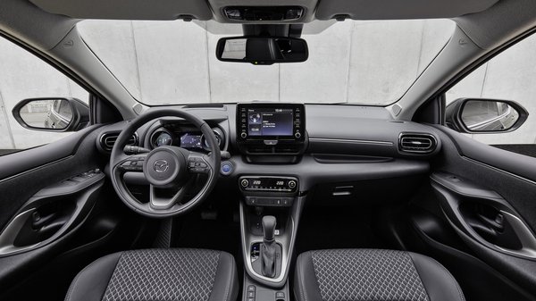 Nem csak a LED-es fényszórókat és a mobiltelefon tükrözésre alkalmas fedélzeti rendszert örökölte meg a Mazda2-es a Yaristól, hanem az öntöltő hibrid hajtásláncot is, mely minden esetben elektromos módban indul, és menet közben a rendszer variálja a hajtást a villanymotor és az 1,5 literes, 3 hengeres benzines között. Rendszerteljesítménye 116 lóerő, amivel kicsit kevesebb mint 10 másodperc alatt gyorsul 100-ra, a végsebessége pedig 175 km/óra.
