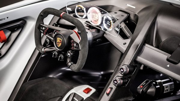 Egyszerre jelennek meg rajta a Taycanról és a 911-esről ismert, jellegzetesen porschés részletek, de sok olyan elem került rá, melyet jövőbeli modelleknél szeretnének majd alkalmazni. A gömbölyded sárvédők és a négy LED-ből álló menetfény, valamint a vízszintes csík hátsó lámpa már ismert motívum. Ellenben a kormány mögött lévő átlátszó, hajlított hologramos kijelző újdonság és nagyon modern, léges látvány.