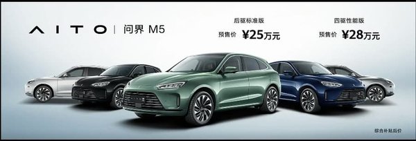 Hátsókerék-hajtású az alapváltozat, de az igazán döbbenetes menettulajdonságokat természetesen az összkerekes verziók hozzák el, ezekből két teljesítményszint van, a performance modell 315 kW (422 lóerő) leadására képes, míg a flagship csúcsváltozat 365 kW (489 lóerő) teljesítményt ad le és 675 Nm csúcsnyomatékkal büszkélkedhet, ebben egy váltóáramú aszinkron motor és egy állandó mágneses szinkronmotor is helyet kapott. A 0-50 km/h-s gyorsulás 1,9 másodperces lehet, 100-ra pedig 4,4 másodperc alatt ér el állóhelyből a korántsem sportautós külső adottságokkal bíró AITO M5. Az autó level 2+ szintű önvezetést kapott.