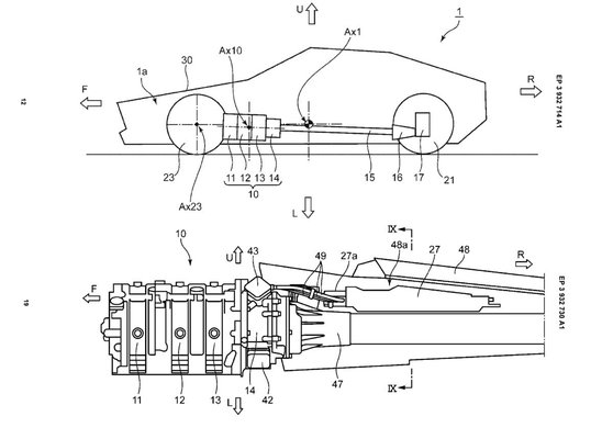 Elég meglepő irányban fejleszt a japán gyártó, legalábbis egy sor szabadalom szerint, amelyeket épp itt Európában mutattak be. A vázlatokon egyértelműen egy hátsókerék-hajtású modell látható, errefelé sosem látott, háromtárcsás Wankel-motorral és 48 voltos enyhe hibrid hajtással.