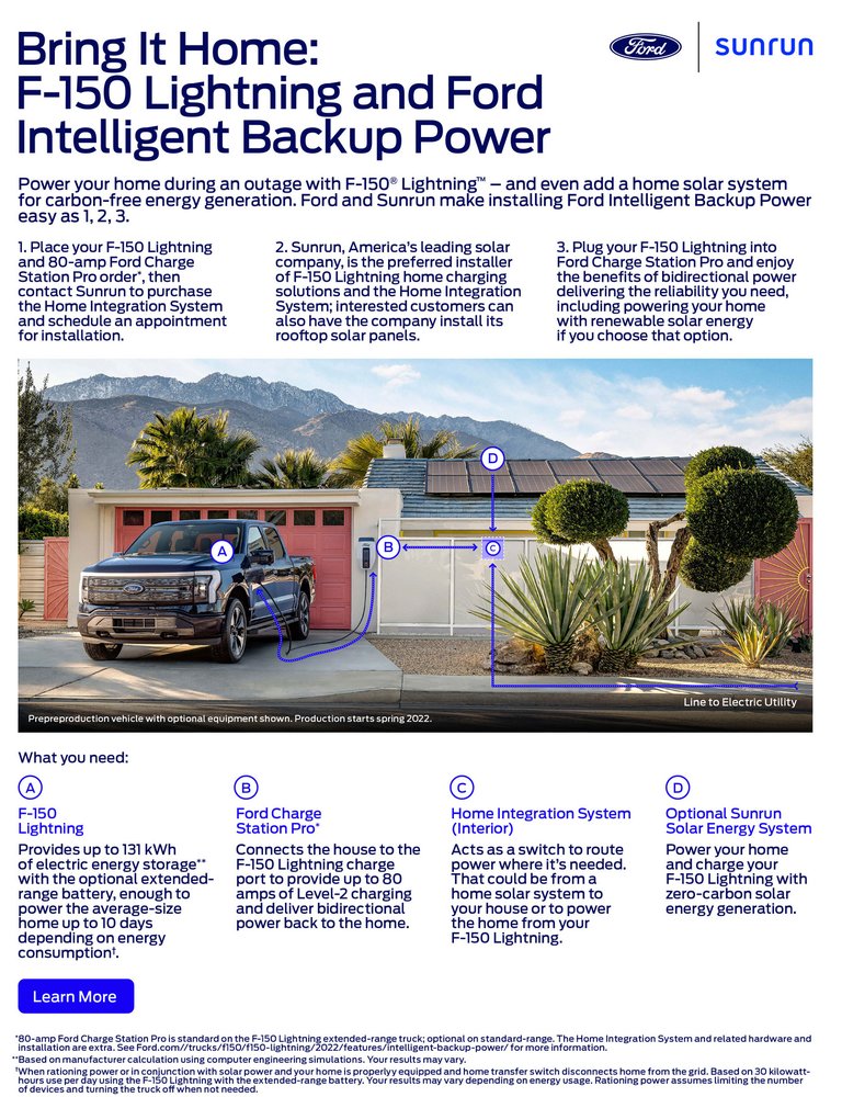 Az Elmű honlapja szerint egy átlagos négyfős magyar háztartás havi áramigénye 200 kWh. Összehasonlításképp a megnövelt hatótávú Ford F150 Lighting akkukapacitása 131 kWh, ami nagyságrendileg stimmel is, innen már csak egy lépés összekötni a két rendszert.