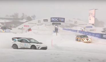 De ez csak papírforma, ami a versenysportban sokszor semmit nem jelent. Az Audit egyébként a sportág legendája, a 75 éves Stig Blomqvist vezette. A két pálya eltérő vonalvezetése miatt a futam állását menet közben nehéz megítélni, csak a célvonal előtti métereken ér újra egymás mellé a két autó.