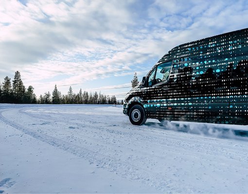 Adatokat egyelőre nem közöltek a készülő új eSprinterről, két fotót viszont igen: most folynak a típus hidegtűrési tesztjei az észak-svédországi Arjeplogban. A gyártó azzal dicsekszik, hogy a furgon a -30 fokos hideggel is dacol.