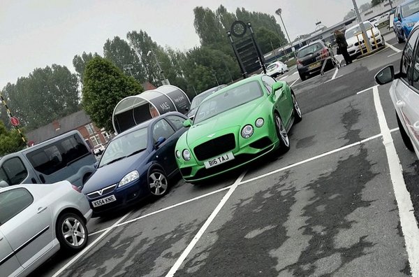 És hogy mennyire csodás tud lenni az internet: a hozzászólások között valaki máris jelezte, hogy ezt az autót mintha látta volna valahol. Bizony, előkerült a fotó is, amint a zöld Bentley – a rendszám is stimmel – egy parkolóban parádésan ráparkolt a vonalra. Igaz, azt azért adjuk meg neki, hogy a mellette lévő Vauxhall Corsát is hasonlóan támasztották le.