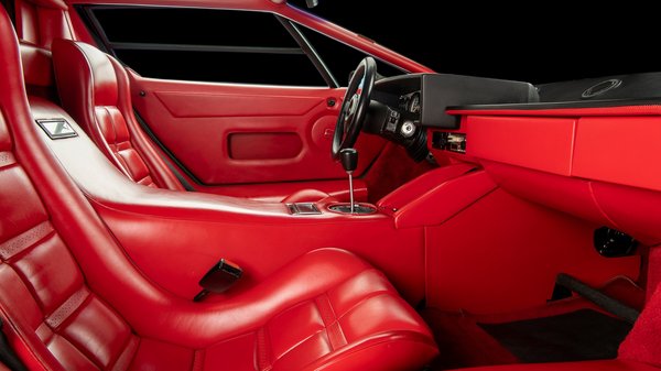 Remek állapotán és ritkaságán túl - 321 készült belőle - a színösszeállítása teszi különlegessé a Countach 5000 S-t, melynek Nero Tenebre nevű fekete fényezése mellé igazi pornóvörös bőrbelsőt választottak. 745 ezer dollárért tolathat be vele valaki a garázsába vele, stílusosan nyitott ajtóval, a küszöbön ülve, ahogy egy Countach-ban illik.