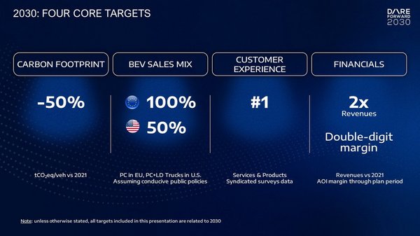 Carlos Tavares ismertette a Stellantis új középtávú stratégiai tervét. Ahogy ez lenni szokott, jól hangzó nevet is találtak neki: Dare Forward 2030. Ez nagyjából annyit tesz, hogy merészen előre 2030-ba, ami elég jól jellemzi a terv jellegét: a Stellantis fejest ugrik a villanyautó-fejlesztésbe, innen már nem nagyon lesz visszaút.