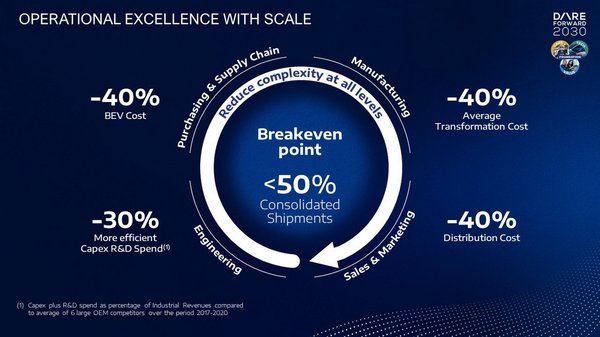 Arról is szó esett, hogy az elektromos autók árát mindenképp lejjebb kell vinni ahhoz, hogy üzleti modellt tudjanak rájuk építeni, amit a Stellantis stratégái széles spektrumú spórolással próbálnak elérni. A modellfejlesztésen 30, a beszállítókon és a gyártási költségeken 40, az értékesítés költségein pedig szintén 40%-ot spórolna a cég, így próbálnák elfogadhatóbb szintre hozni az elektromos járművek árát. Azt egyelőre elég nehéz elképzelni, hogy a beszállítók és a kereskedők egyszerűen lemondanak a bevételeik egy jelentős részéről, de más út nem nagyon látszik.