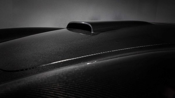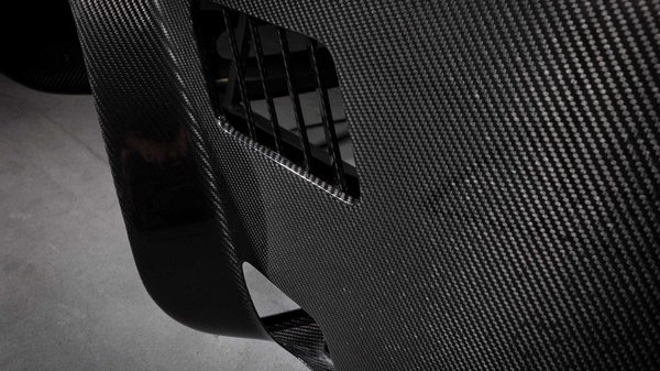 Egyelőre a kasznit mutatták be, ami teljes egészében karbonból készül, mindössze 88 font, az nagyjából 40 kilogramm súlyú és eszméletlenül jól néz ki. Már távolról se tűnik igénytelennek a kaszni, de ha közelebbről megnézzük, feltűnik, hogy a szénszálas szövet szálirányai az elemek találkozásánál is futnak egymással. Reméljük ezt a csodás figyelmességet nem takarják majd el fényezéssel.