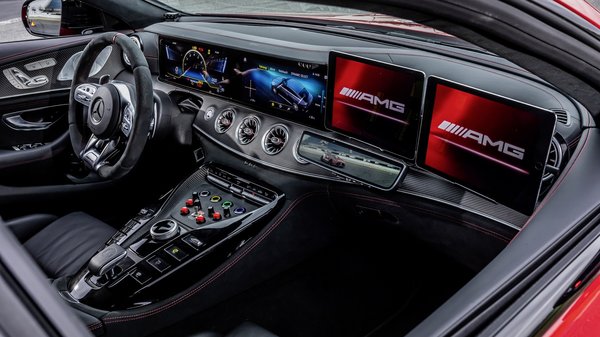 Ebben az autóban szintén az AMG 4,0 literes, biturbó V8-asa van, de itt valamivel szerényebb 630 lóerővel, 9 sebességes automata váltóval, viszont összkerékhajtással. Ez is 3,2 másodperc alatt gyorsul 100-ra, a végsebessége pedig 315 km/óra. Szépen mutat pirosban a 4 ajtós GT is, de mindenkinek az a legjobb, ha ezt nem látjuk bevetésen.