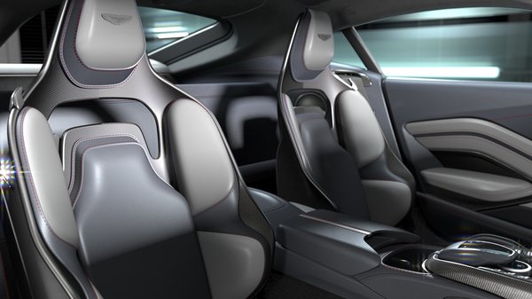 Szénszálasak a lökhárítók, a motorháztető és a sárvédőívek, valamint a küszöbök és könnyebb akkumulátorral szerelik a V12 Vantage-et. Középen kivezetett duplacsövű kipufogója csak a látvány, de mögötte a rendszer is kifejezetten ehhez az autóhoz készült, 1 mm-es rozsdamentes acélból, így 7,2 kg-mal könnyebb. A nagyobb motor megkövetelte az extra merevítőket, még az üzemanyagtank is szilárdabb.
