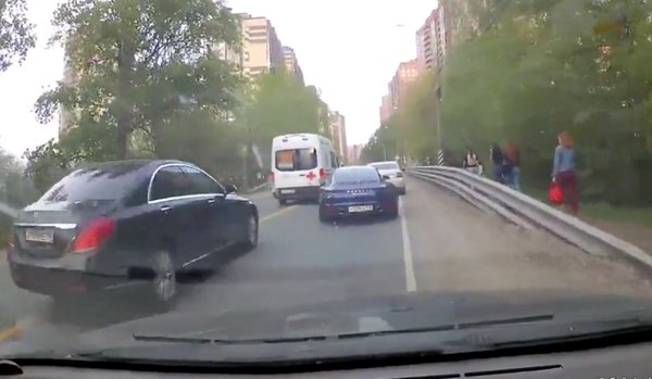 Mind a különböző országok KRESZ-szabályai, mind a józan ész elég egyértelműen diktálja, mit kell tenni, ha a forgalomban szirénázó mentőautóval találkozunk. Adjunk neki szabad utat, húzódjunk félre, ne tartsuk fel, és ne próbáljuk előzni. Mindig vannak azért, akiknek a szemében a kék villogó vörös posztóvá válik, ilyen volt nemrég az a BMW-s is aki Borsodban előzte jobbról, 180-nal a mentőt. Most egy mercedesest tanítottak móresre, de ez legalább nem itthon történt.