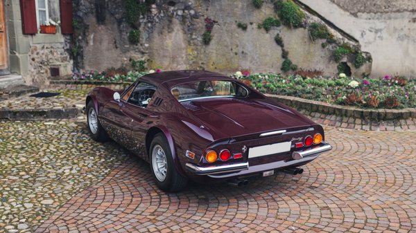 1973 májusában készült el ez a 246 GTS, mely egyike a nagyjából 50 darabnak, ami ezt a csodálatos Rosso Cordoba nevű bordó fényezést kapta. Az amerikai specifikációs autó belterét barna Connolly bőrrel kárpitozták, az ülések hurkáit Daytona stílusban varrták. Klímaberendezéssel és elektromos ablakemelőkkel szerelték, valamint 14 colos magnézium Campagnolo kerekeken vette át első tulajdonosa a kaliforniai Los Angelesben.