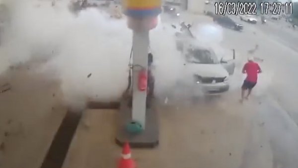 Az eset Brazíliában történt és csodával határos módon mindenki megúszta karcolások nélkül, az autó viszont szinte borítékolhatóan totálkáros lett. Egy másik autó és egy fal is megrongálódott a robbanástól és a becsapódó törmelékektől. A jelek arra utalnak, hogy egy utólagos és valószínűleg nem hivatalosan beszerelt gáztartály lehetett az eset okozója.