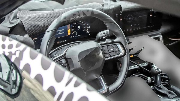 Az autó belsejét is sikerült lekattintani, az alul lapos kormánykerék és a váltókar ismerős lehet az előző generációból, érdekesség, hogy a kijelző nem az új Explorerben és a kínai Mondeo-utódban látható típusú, hosszú egyenes panel, ehelyett van benne egy finom törés. Rossz hír azonban, hogy a klímapanel teljeseen digitalizálódott, nincsenek már hozzá valódi gombok.