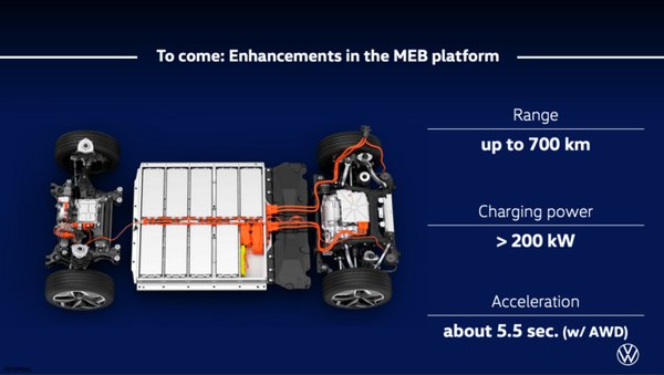 Nem kérdés, hogy az elektromos autók terjedésének három tényező adhat nagy lökést: az árak csökkenése, a töltőhálózat bővülése és a hatótáv növekedése. A Volkswagen utóbbi téren szeretne előrelépni egy jelentőset, azt ígérik, hamarosan 700 kilométert tudnak majd megtenni egy töltéssel az MEB-platformra épülő modellek.