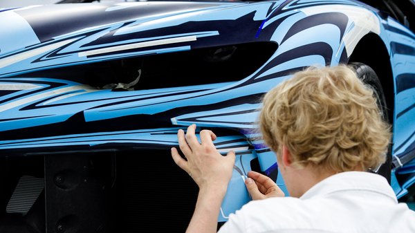 Mielőtt kigurulna a minőségellenőrző fénycsatornából, a Chironra több kétdimenziós formát is készítenek, amiket milliméteres pontossággal illesztenek a szénszálas karosszériára. A Bugatti kézműves festői ezek után rétegről rétegre festik meg a mintázatot, hogy megteremtsék a fényvisszaverődés illúzióját. Az elkészült művet több rétegnyi lakkal borítják.