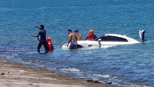 A parton álldogáló autó ugyanis a tenger felé gurult, és meg sem állt a vízig, amiben aztán derékig mártózott meg. Az autót végül sikerült újra szárazföldre juttatni, de az egészen biztos, hogy nem versenyzett tovább a nap folyamán, hiszen vízkáros lett.