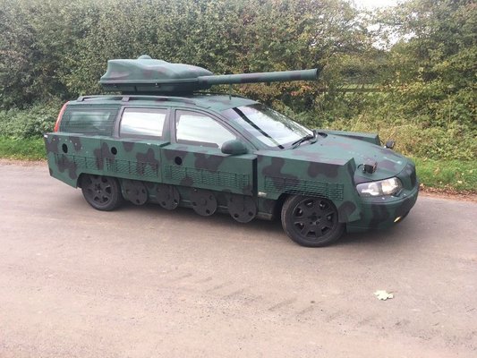 Nem először bukkan fel az autó az interneten, mi is írtunk már róla, sőt ezek a fotók sem éppen a legfrissebbek. Viszont úgy tűnik, megint eladó, feltűnt ugyanis a Facebook Marketplace-en. A terepszínű kamuflázs festés egyébként egyedi szélesítésekkel ellátott karosszériát fed, és bár a V70-et nem alakították át lánctalpassá, a támasztókerék-imitációk sokat dobnak az összképen.