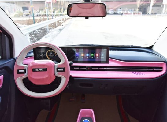 Az autó kívül-belül nagyon egyszerű, a műszerfal szinte teljes egészét két 10,25 hüvelykes, széles vásznú kijelző alkotja. A puritán kialakítást és a kis teljesítményt láthatóan a két árnyalatú, fagylaltszíneket fehérrel kombináló fényezéssel igyekeztek ellensúlyozni: narancs, halványzöld és rózsaszín változatok is készülnek a típusból.