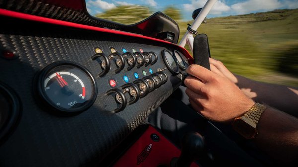 A végeredmény nem túl szép, cserébe célszerű, és persze megy, mint a barom, hiszen a kétliteres, 210 lóerőre húzott Ford Duratec motor itt csupán 560 kilogrammot mozgat. Így aztán 3,6 másodperc alatt elérhető a 96 km/h, de ami ennél is lényegesebb, a szuperkönnyű, szuperalacsony sportkocsi kanyarban is villámgyors lehet. Ennek érdekében 10 fokozatban állítható Bilstein lengéscsillapítókat, és jól tapadó, minimális mintázatú gyári abroncsokkal szerelték fel az autót.