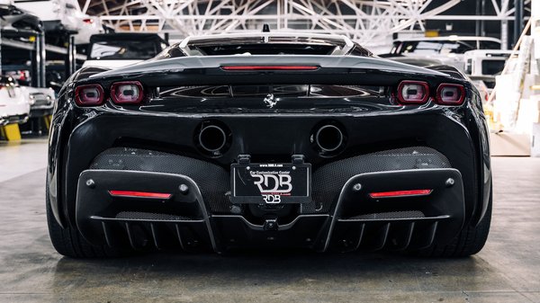 A tuning ebben az esetben az optikára szorítkozik, a motorhoz és a hajtáslánchoz nem nyúltak. Mondjuk ezen a ponton nehéz is mit hozzátenni, hiszen az SF90 3,9 literes, V8-as biturbója szériában is 780 lóerőt présel ki magából, amit három villanymotorral is kiegészítettek, így a rendszerteljesítmény 1000 lóerő. Valljuk be, ahhoz nagyon elborultnak kell lenni, ha valaki ennél is többet szeretne.