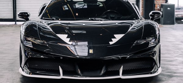 Az 1016 Industries fekete Ferrari SF90-ese fehér kiegészítőket kapott és valóban egészen elképesztően néz ki. A cég karbonból készíti a külső elemeket, amiket az autóhoz jól passzoló, tehát messziről is jól látható áron mérnek.