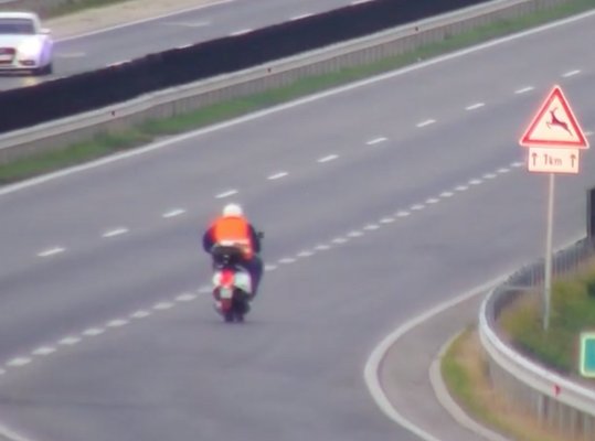 Végülis a kamerákon viszonylag hamar észlelték a bácsit és értesítették a rendőrséget, akik a lehető leghamarabb le is kapcsolták. A robogója vélhető ötven köbcentis lehetett, amik közül egy gyengébb, négyütemű darab végsebessége – különösen, ha benne van a gyári fojtás – szánalmasan alacsony még akár városi közlekedéshez viszonyítva is. Az, hogy az autópályán közlekedőkhöz viszonyítva mennyire tűnik életveszélyesen lassúnak egy ilyen, az tökéletesen látszik a videón.