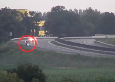 Itt ugyan az irány stimmelt, de gyakorlatilag semmi más nem. Eleve a leállósávot érezte leginkább magáénak az idős pilóta, ahol – szerinte – zavartalanul tud sétatempóban poroszkálni a motorjával. A lehajtók se nagyon zavarták meg, azokon is simán folytatta az útját, aztán a záróvonalat átlépve visszatért a leállóba. Sőt, a leginkább letaglózó jelenet az volt, amikor hősünk kicsit megfáradt és megállt tornázni a leállósávban, mert miért ne.